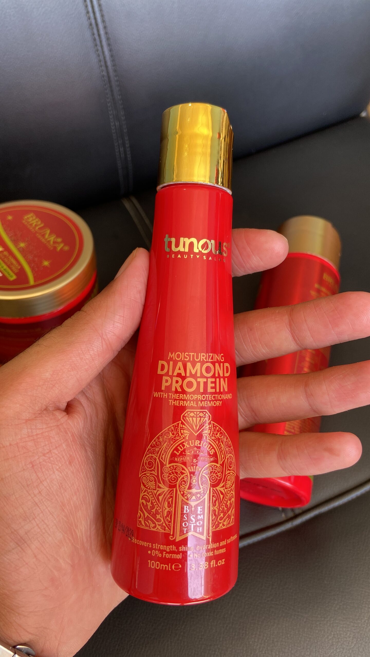 Diamond Bleu Moisturizing Diamond Protein (100ml) – smooths frizz, hydrates, and protects hair from heat styling.